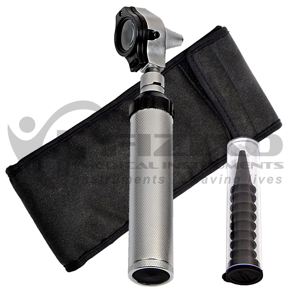 Complete with Econoline Otoscope, Battery Handle, 5 each Disposable Specula Dia 2.5 mm and 4.0 mm in Soft Pouch.
