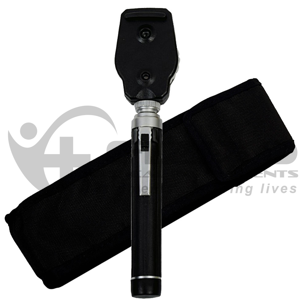 Premium Ophthalmoscope Set for professional eye examinations across Europe. This diagnostic kit includes a high-quality single-light ophthalmoscope, a durable battery handle, and a soft protective pouch for convenient portability and storage. Designed for use in clinics, hospitals, and educational settings, this compact set ensures reliable performance and ease of use.