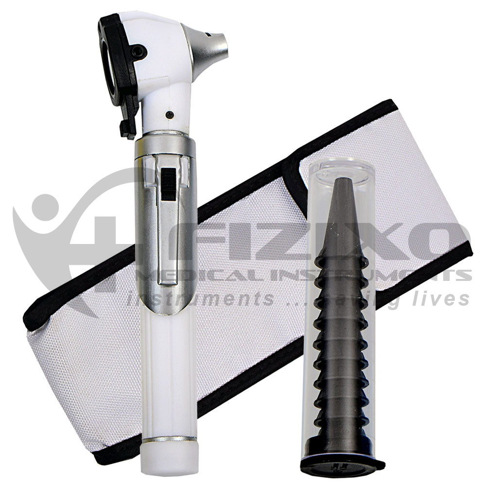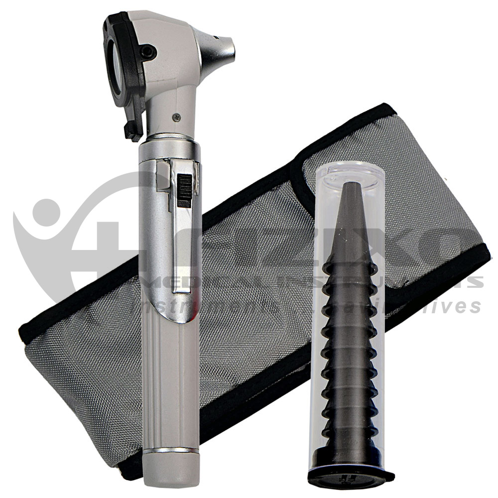 Complete with Otoscope set, battery handle, 5 each disposable Specula dia 2.5 mm & 4.0 mm in Soft Pouch.